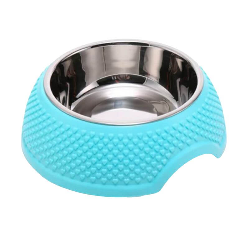 Guau! Plato de Acero Inoxidable Antideslizante, color Celeste ,Talla M, Diámetro de la base 25 cm