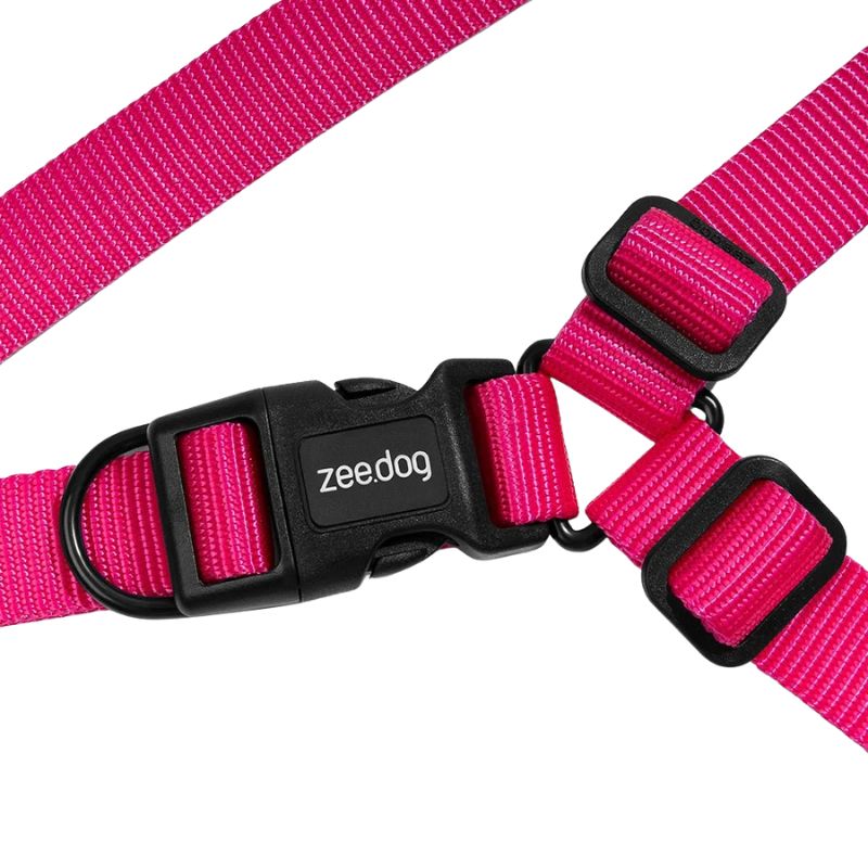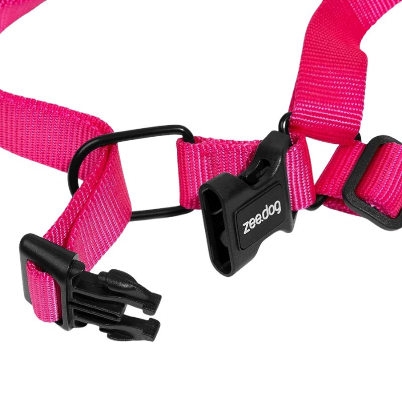 Está fabricado con teterón de poliéster, el mismo material que se utiliza en cinturones de seguridad, lo que garantiza alta resistencia y durabilidad. Incluye un bloqueo de seguridad lateral para mayor firmeza, incluso en perros activos. Se recomienda usarlo junto con la guía de amortiguador Zee.Dog para una experiencia de paseo aún más cómoda y controlada.