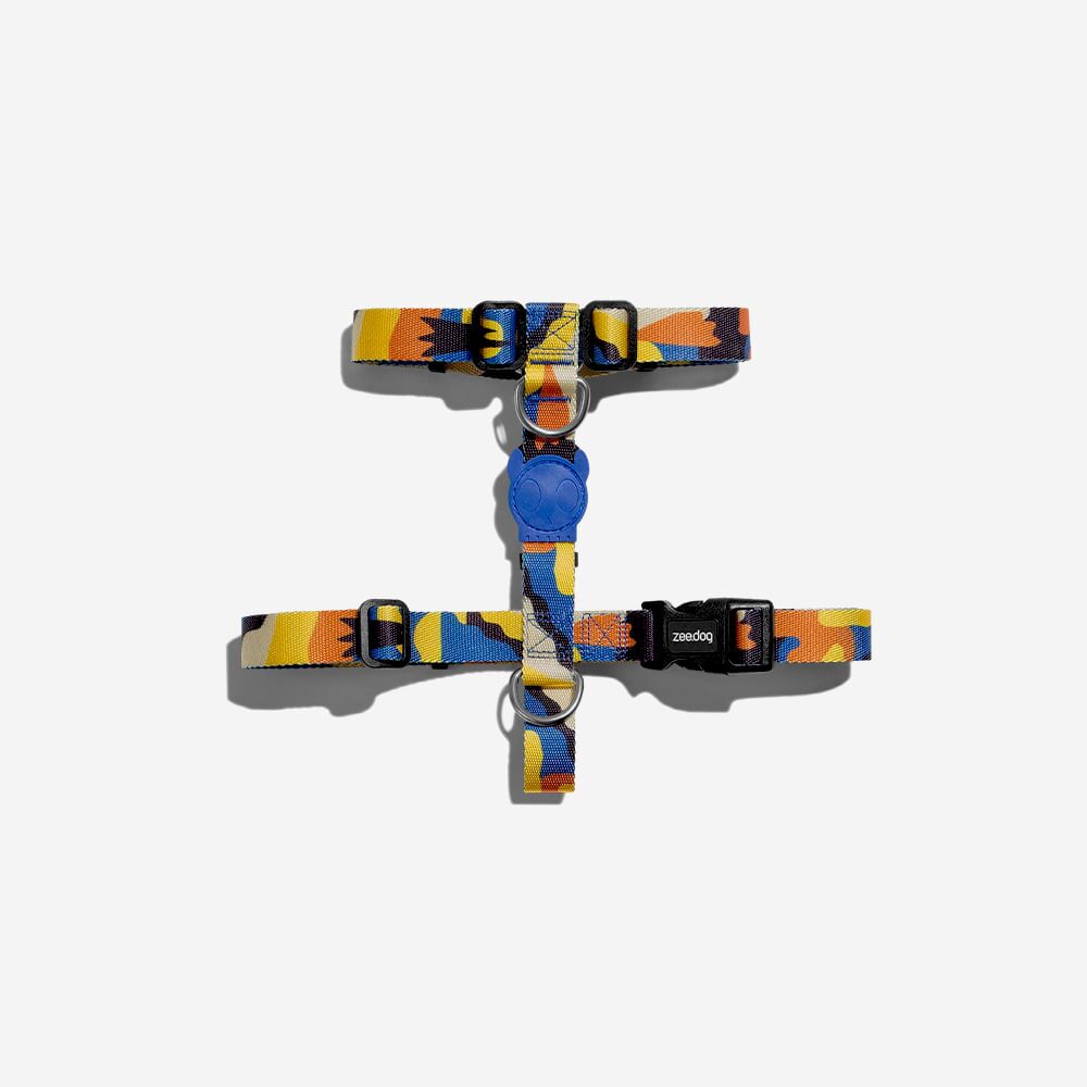 El Arnés para perros Zee.Dog H está hecho de poliéster duradero, el mismo que se usa en los cinturones de seguridad. Tiene gran capacidad de ajuste tanto en el cuello como en la cintura, siendo fácil de adaptar y dispone de dos posiciones para sujetar la guía. Al igual que con los cinturones de seguridad, se recomienda evitar el contacto con superficies rugosas o afiladas como picaduras, por ejemplo.