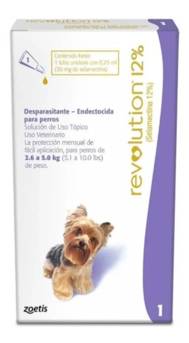 Revolution 12% Solución Tópica, Antiparasitario Externo para Perros, 2.6-5 kg, 1 pipeta de 0.25 ml (dosis mensual)