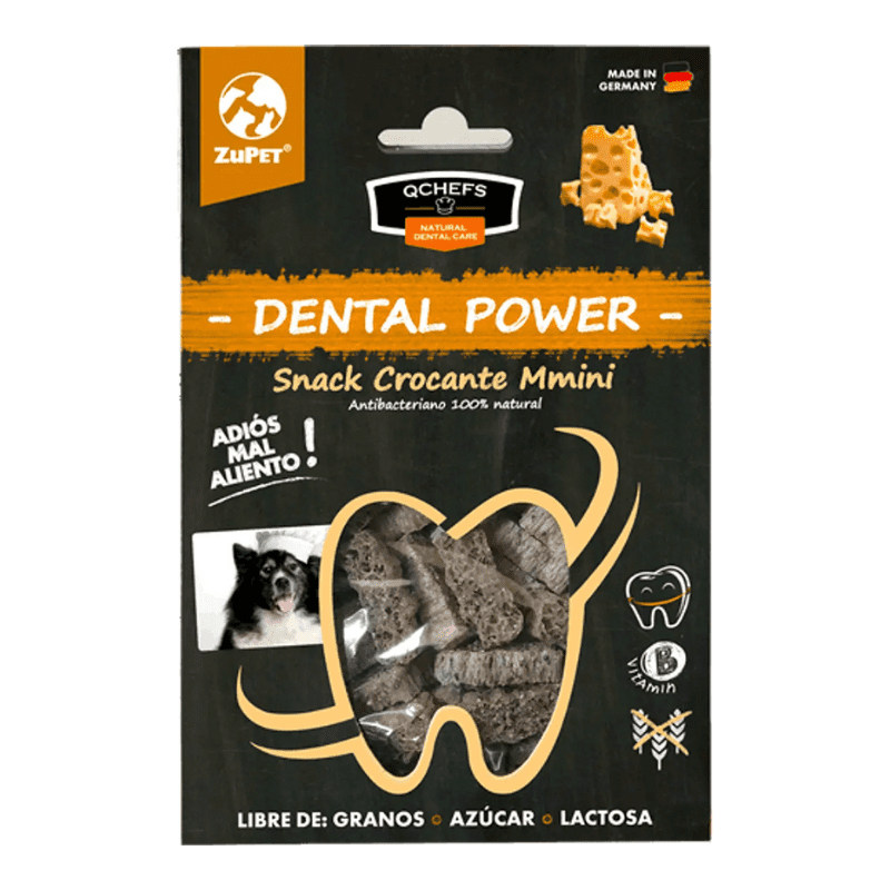 ZuPet QChefs Dental Power Crocante Mmini, Snack Dental para Perros Mini y Pequeños, Crocantes de Queso, bolsa de 65 gr