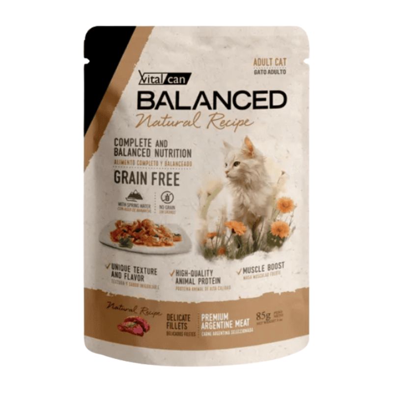 Vital Can Premium Balanced Natural Recipe, Alimento Húmedo para Gato Adulto, Sabor Carne Premium Argentina, Sachet de 85 gr