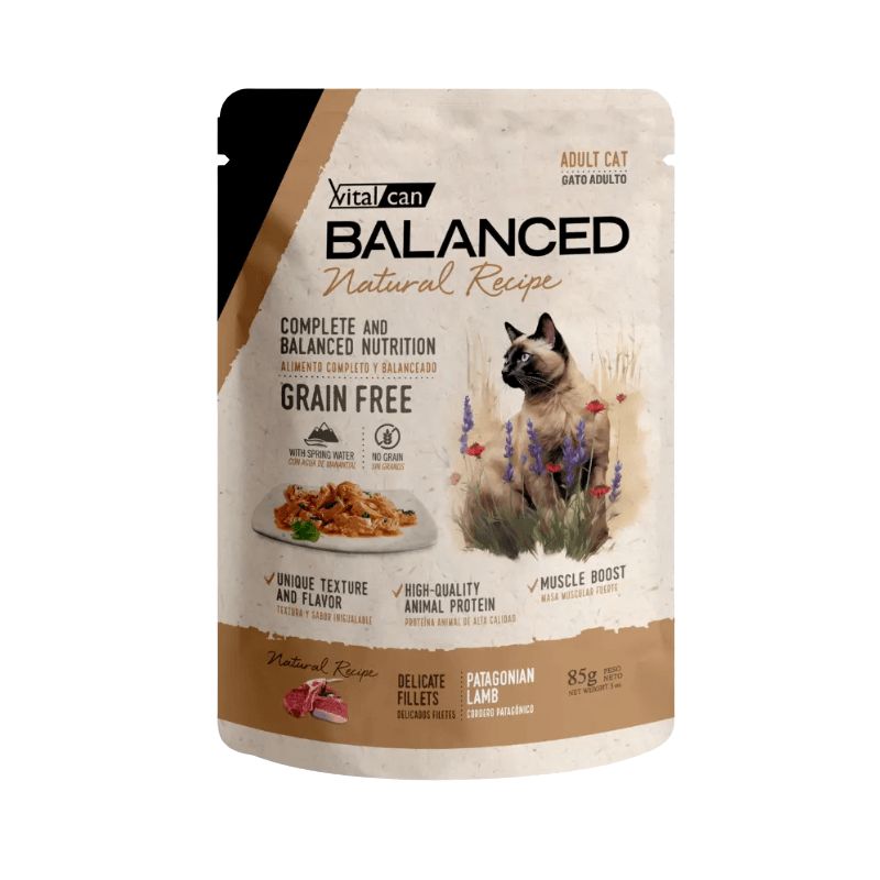 Vital Can Premium Balanced Natural Recipe, Alimento Húmedo para Gato Adulto, Sabor Cordero Patagónico, Sachet de 85 gr
